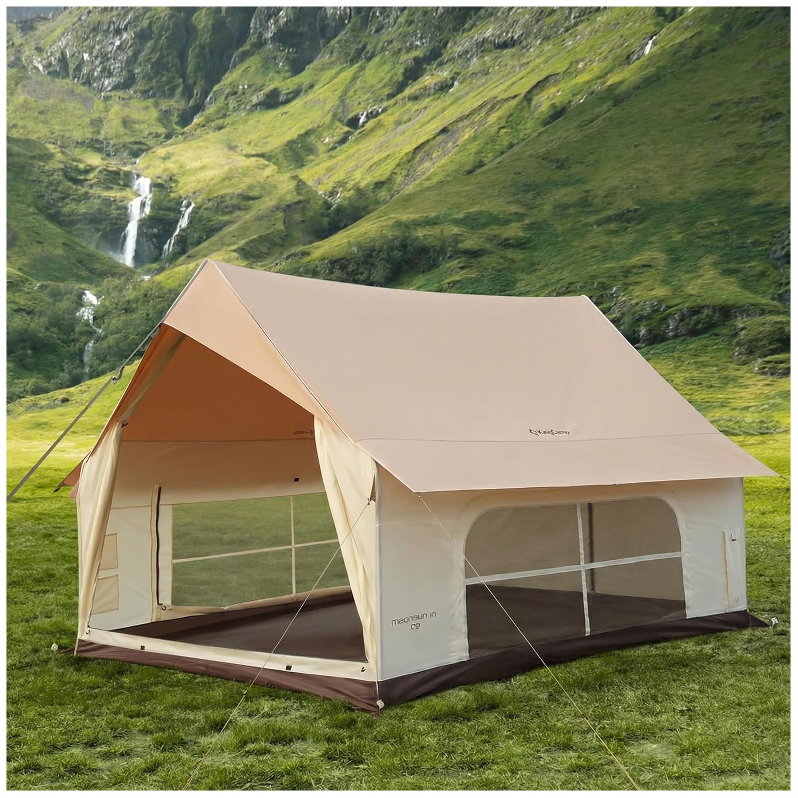 【フレーム厚1.2mmに強化】KingCamp ロッジ型テントポリコットン2-4人用ファミリーテント