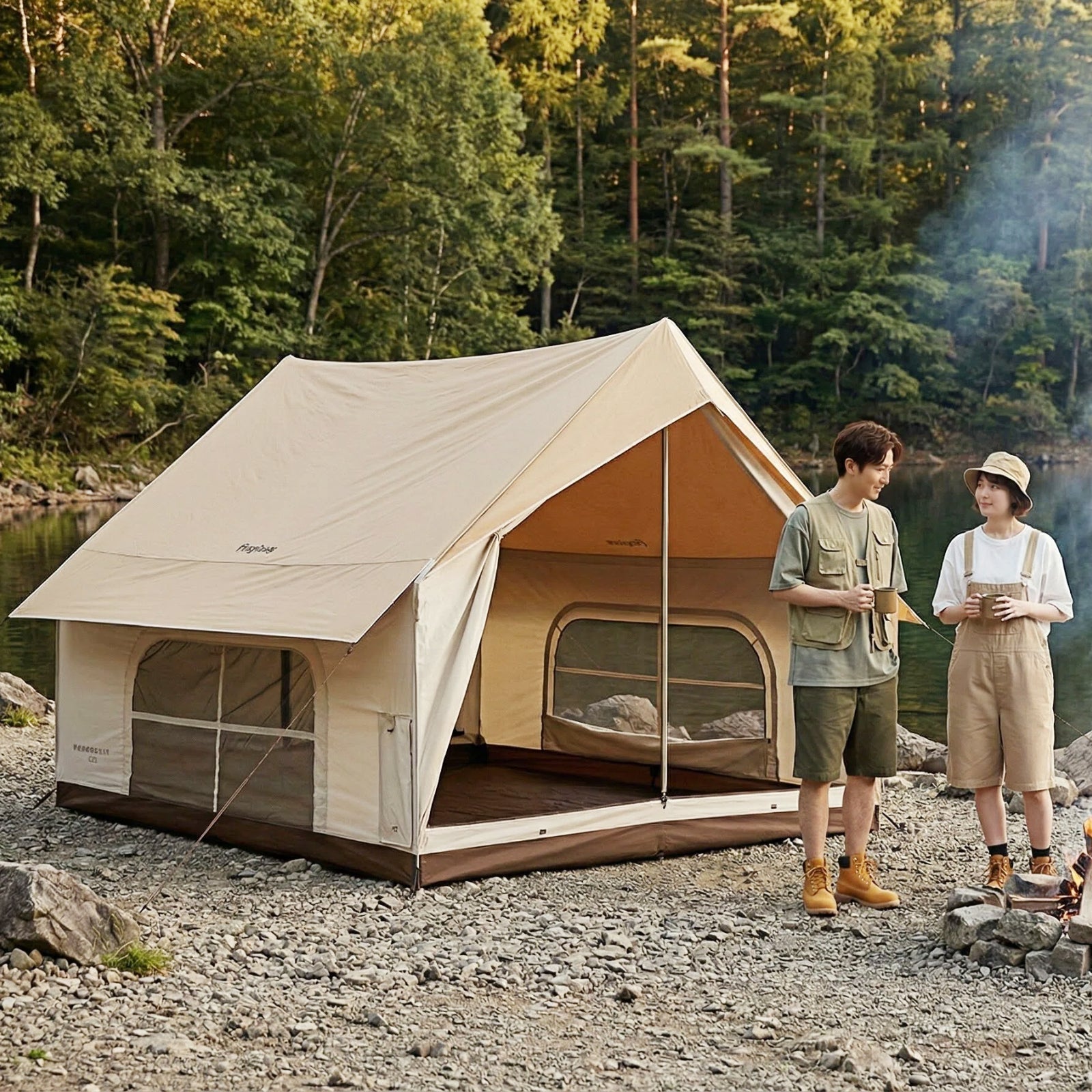【フレーム厚1.2mmに強化】KingCamp ロッジ型テントポリコットン2-4人用ファミリーテント