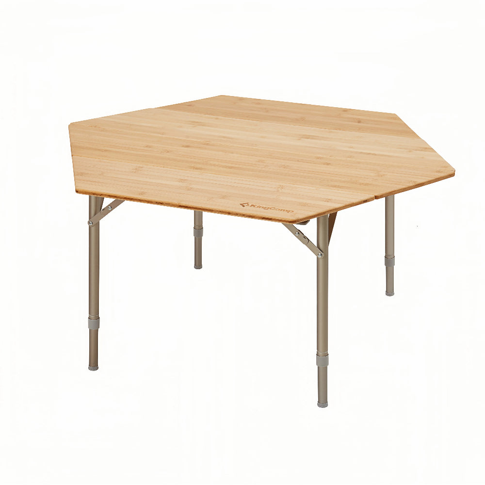 【B品・高さ調節範囲30~40cm】KingCamp アウトドアテーブル折り畳み竹製 キャンプテーブル4折六角高さ無段階調節30-40CM