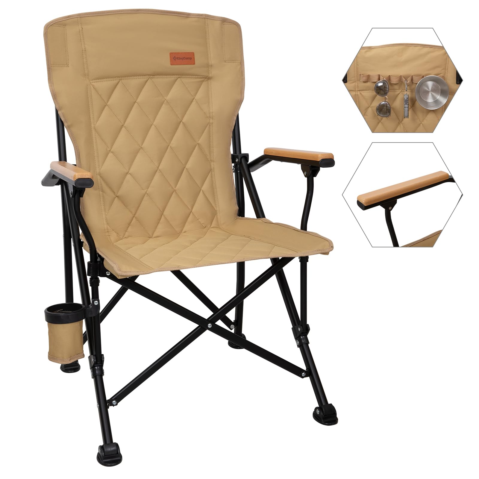 【2025 NEW】KingCamp アウトドアチェアコットン入り木製手すり折りたたみ